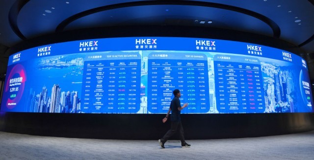 这是5月20日拍摄香港交易所电子显示屏。新华社记者 陈铎 摄