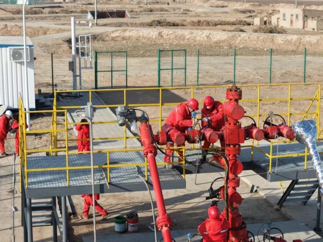 塔里木油田员工正在对设备进行检查。(塔里木油田供图)