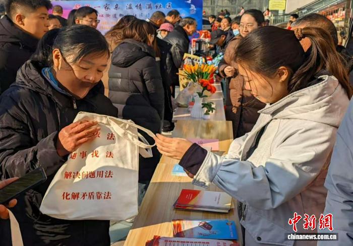 中新网济南12月4日电(王采怡)12月4日,菏泽市单县“十月物资交流大会”热闹非凡。人群中,一个特别的摊位引人注目——单县人民法院谢集法庭法官团队连续第三年在这里“摆摊”普法,将宪法精神融入市井烟火。